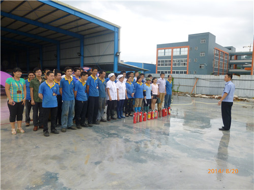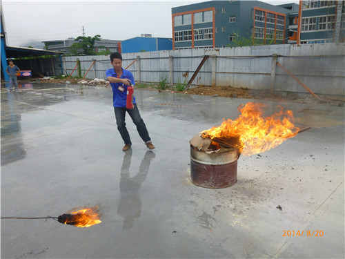 本次培訓由人力資源中心行政部組織,三批次消防演練均安排于日程下午15:45開始,公司一線員工及辦公室人員共110人參加了本次培訓。時間一到,參訓人員列隊完畢后,正式開始培訓,首先進行的是理論部分,行政部義務消防隊指導員保安隊胡副隊長為在場的新員工講解了防火知識、滅火器使用及應急逃生知識。在講解過程中,胡副隊長結合實際深入淺出,為使學員更好地理解滅火器使用原理,他拿出實物與參訓人員比對參考,為下一部分的實操演練打下了良好的基礎;參加培訓的員工不顧現(xiàn)場下起了小雨,認真地學習思考所講內容,有不解之處及時提問,現(xiàn)場氣氛活躍。緊接著,培訓進入實操環(huán)節(jié)。為使所學知識落到實處,公司為每批參加培訓的員工準備了10個滅火器進行明火演練,現(xiàn)場不少員工主動請纓,男同事拿起設備來一拉一噴,架勢十足,女同事滅起火來干凈利落,巾幗不讓須眉。最后,培訓在一片掌聲中圓滿地落下了帷幕。