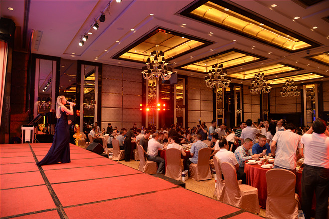金色八月,熱情似火,有朋自遠(yuǎn)方來(lái),逢盛事喜相聚。為了對(duì)即將召開(kāi)的第十屆中國(guó)(中山)國(guó)際游戲游藝博覽交易會(huì)表示熱烈的祝賀,以及對(duì)多年來(lái)一直關(guān)心、支持金馬健康發(fā)展的合作伙伴和嘉賓表示誠(chéng)摯的歡迎和衷心的感謝,8月10日晚,乘著行業(yè)盛會(huì)的東風(fēng),公司在中山喜來(lái)登酒店舉行了盛大的客戶招待晚宴。國(guó)內(nèi)外新來(lái)客商、嘉賓、媒體記者200余人應(yīng)邀出席,與公司管理層及員工代表們共同感受了一場(chǎng)精彩紛呈的盛宴,度過(guò)了一個(gè)充滿歡樂(lè)與活力的難忘之夜。