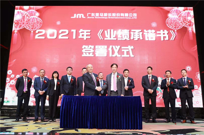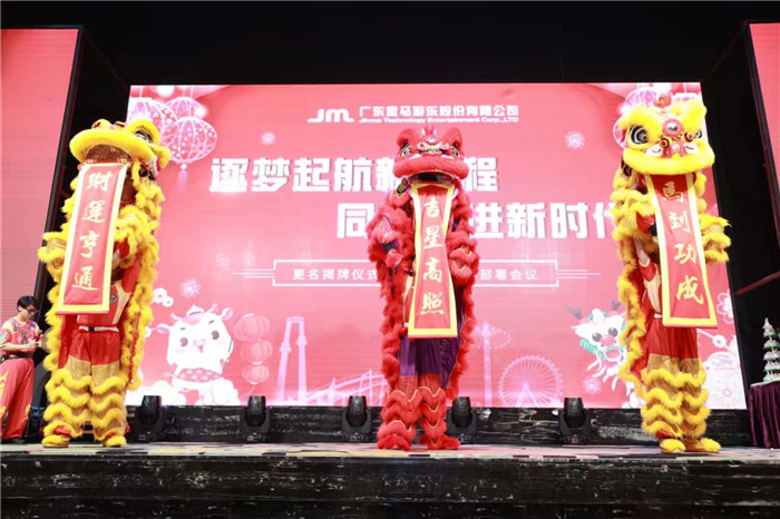 在全場(chǎng)人員的共同見(jiàn)證下,公司各部門及子公司負(fù)責(zé)人共同上臺(tái)簽署2021年《業(yè)績(jī)承諾書(shū)》,隨后在全場(chǎng)熱烈的掌聲中全體高管手執(zhí)輝煌線,共同為“金馬游樂(lè)”更名揭牌。更名后,公司將以嶄新面貌繼續(xù)為全球客戶提供優(yōu)質(zhì)的游樂(lè)產(chǎn)品和服務(wù),在新征程中再創(chuàng)金馬輝煌偉業(yè)。