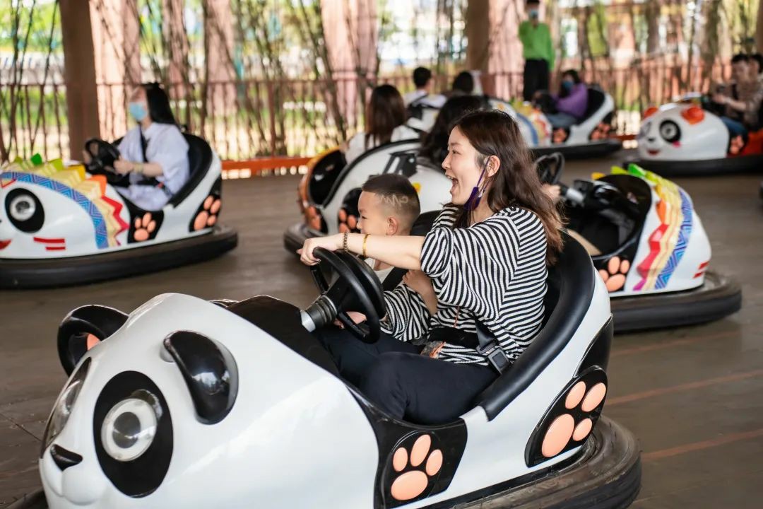 來到熊貓主題碰碰車館,全家一齊參與激情碰撞,歡樂又解壓。