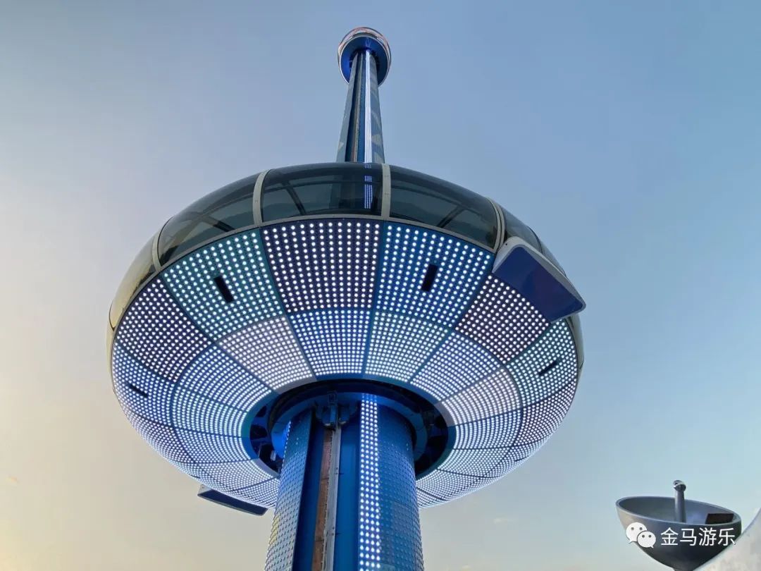 隨著“迷你世界·冒險(xiǎn)山”的開(kāi)放,深圳歡樂(lè)谷與金馬游樂(lè)攜手打造的地標(biāo)項(xiàng)目——全景式高空觀景塔”星空之環(huán)”亦正式亮相。“星空之環(huán)”豎立在冒險(xiǎn)山山頂,有著65米高的圓柱塔體,極具未來(lái)感的艙體,夜幕中的百變燈效以及全天候360°絕美觀景享受,使其成為園區(qū)日夜閃耀的明星。