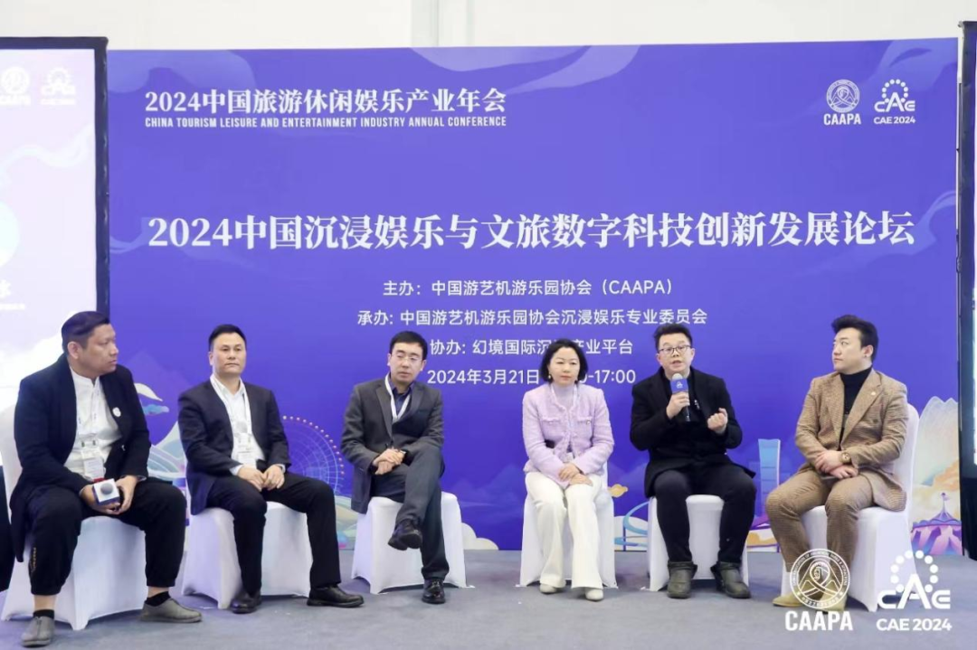 展會期間還同期舉辦了2024中國旅游休閑娛樂產(chǎn)業(yè)年會-2024中國沉浸娛樂與文旅數(shù)字科技創(chuàng)新發(fā)展論壇,公司副總經(jīng)理林澤釗作為受邀嘉賓出席并參與了“沉浸產(chǎn)業(yè)服務(wù)供應(yīng)鏈體系融合”主題圓桌討論,與業(yè)內(nèi)同仁就“技術(shù)創(chuàng)新是如何制造體驗賣點和驅(qū)動消費(fèi)”、“面對2024年行業(yè)商業(yè)變量的應(yīng)對策略”等熱點話題展開探討。林澤釗副總經(jīng)理表示:在虛擬沉浸式項目中,創(chuàng)意概念的落地能力尤為關(guān)鍵,打造高沉浸感體驗極其考驗多維一體的技術(shù)集成能力,得益于金馬游樂多年技術(shù)投入,近年多個國內(nèi)首創(chuàng)虛擬沉浸項目順利落地,沉浸效果備受肯定與青睞;面對如今市場多元化、輕體量、快交付的需求特點,金馬游樂正通過技術(shù)平臺整合來加快創(chuàng)新技術(shù)成果轉(zhuǎn)化,源源不斷為市場供給新產(chǎn)品,引領(lǐng)行業(yè)向新而行。
