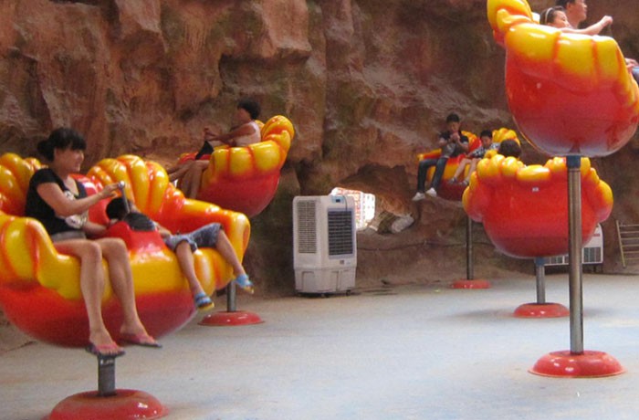 同時(shí)作升降、旋轉(zhuǎn)運(yùn)動(dòng)。整套設(shè)備由座艙、平臺(tái)、氣動(dòng)系統(tǒng)、電氣控制系統(tǒng)等所組成。蝴蝶造型的玻璃鋼座艙,栩栩如生。設(shè)備伴隨著明快的音樂有節(jié)奏地上升和下降,座艙可以乘坐二人,座艙的旋轉(zhuǎn)由乘客自由操作。同一時(shí)間場(chǎng)地里的座艙此起彼伏,猶如一片蝴蝶歡快地上下跳躍、舞動(dòng),使人有如置身于大舞臺(tái),盡情地翩翩起舞。