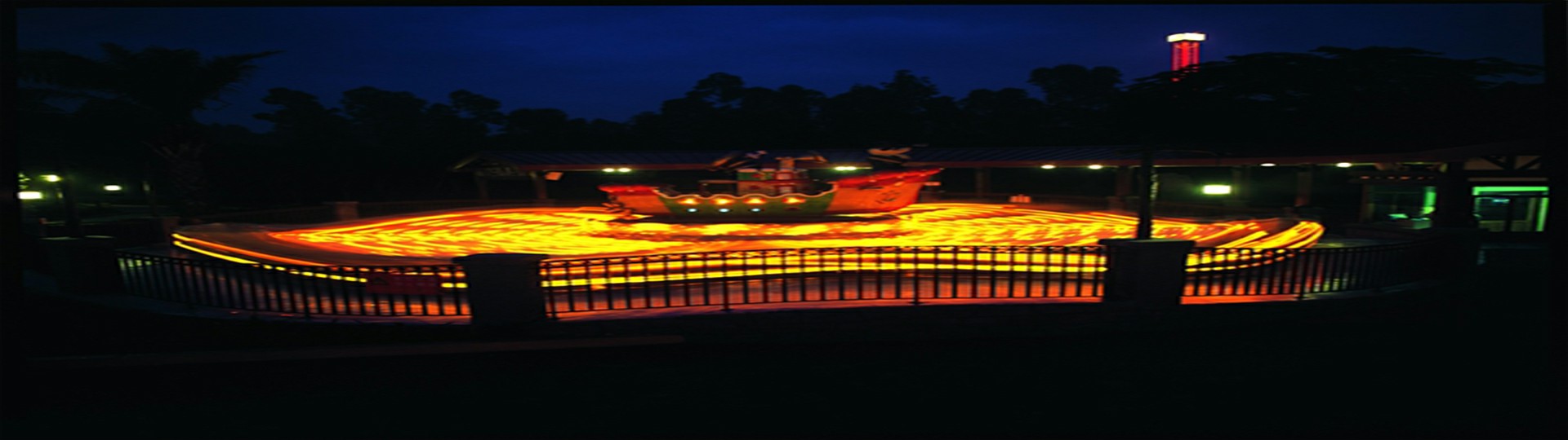 轉(zhuǎn)臂帶動船體旋轉(zhuǎn),船體沿著落差達到0.8米的路軌上下升降,快速旋轉(zhuǎn)當(dāng)中,游客交替感受到上升超重和下降失重,猶如大海行船,波濤洶涌,驚心動魄。配上美麗動感的燈飾,大型逼真的艦艇船模,氣勢磅薄的場面,是最吸引人的游藝機之一。