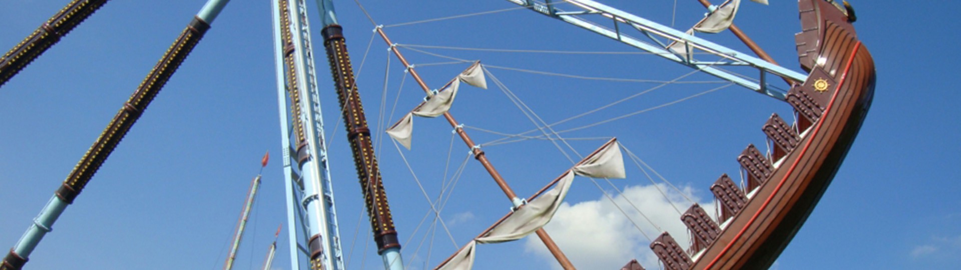 海盜船繞水平軸來回?cái)[動(dòng),模擬海盜乘風(fēng)出海的場景,交替而至的失重 和超重感讓乘客盡情體驗(yàn)搖擺的樂趣。14排座椅,承載56人。