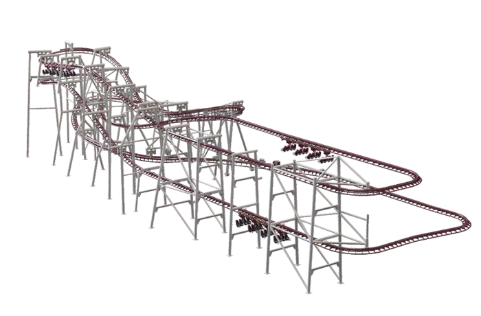 彈射懸掛過(guò)山車是一款懸掛式觀影過(guò)山車,動(dòng)力采用LSM電磁彈射技術(shù)驅(qū)動(dòng),過(guò)山車經(jīng)典玩法元素融入影視特效,并可與其它設(shè)備融合打造更具吸引力的主題項(xiàng)目。在影視布景區(qū),車體可邊前進(jìn)邊旋轉(zhuǎn),乘客身臨其境地觀覽美景或聆聽(tīng)故事;在彈射區(qū)、制動(dòng)區(qū)、自由滑行區(qū),車體旋轉(zhuǎn)功能關(guān)閉并鎖緊,乘客進(jìn)入加速、俯沖、飛翔、失重等多重刺激體驗(yàn)中,兩段觀影區(qū)和兩段彈射滑行區(qū)交替穿插,實(shí)現(xiàn)觀影娛樂(lè)與滑行刺激的雙重沉浸感受。