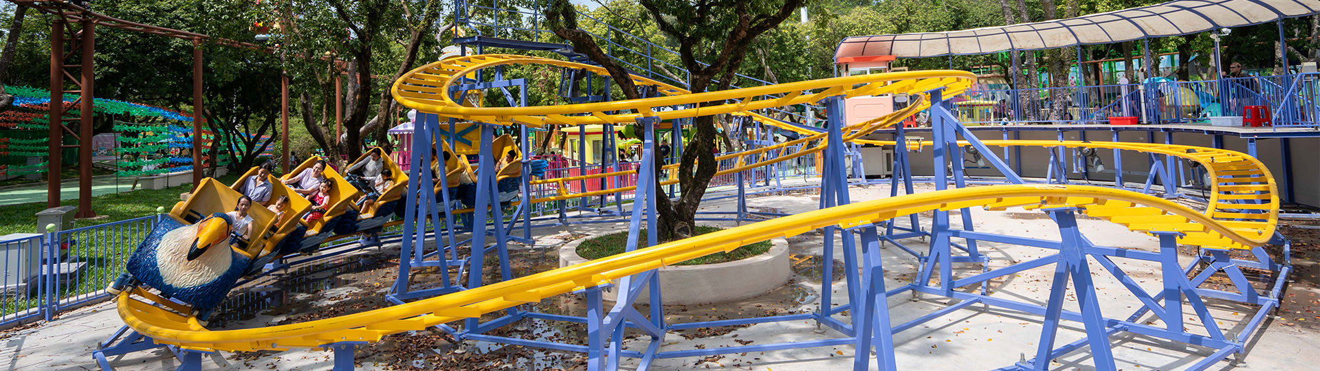 大嘴鳥過(guò)山車采用活潑獨(dú)特的巨鳥造型車體,集娛樂性和趣味性于一體,對(duì)兒童極具吸引力。設(shè)備占地面積小,且路軌站臺(tái)均采用組合式結(jié)構(gòu),無(wú)需制作基礎(chǔ),可實(shí)現(xiàn)快速拆卸。