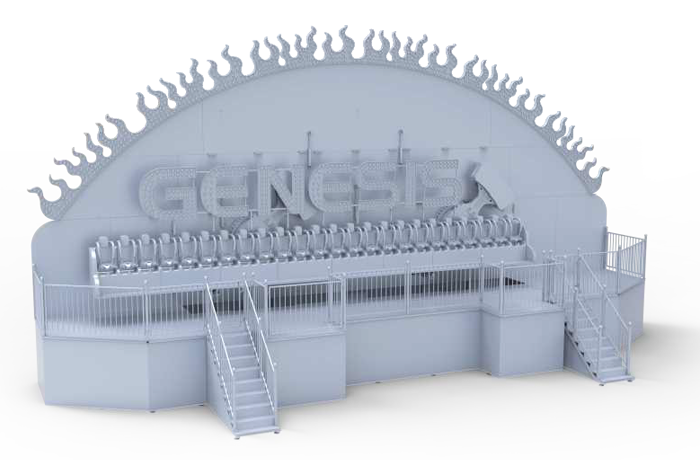 排山倒海在液壓馬達(dá)的驅(qū)動下,兩個擺臂帶動座艙轉(zhuǎn)動,配合座艙的整體平動,實現(xiàn)圓形的座艙運動軌跡。乘客并排座于座艙中充分感受順時、逆時交替變速旋轉(zhuǎn),勢如上山下山的時空交錯感。