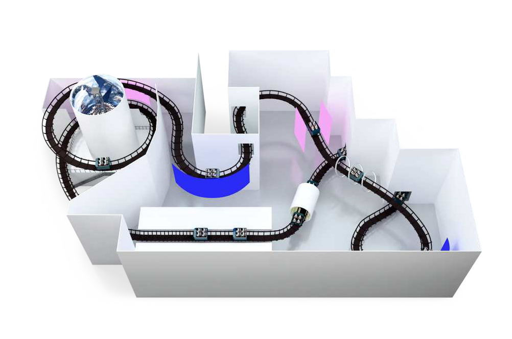 互動(dòng)軌道?是?款室內(nèi)休閑游樂設(shè)備,將3D交互游戲和過??兩種元素有機(jī)結(jié)合,乘客在游玩過程中既能體驗(yàn)3D?體的主題視覺效果,?能體驗(yàn)過??刺激,還互動(dòng)參與激烈的射擊競(jìng)賽,是?款新穎的架空游覽?項(xiàng)?。