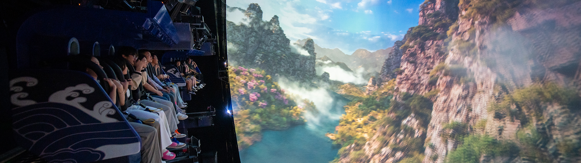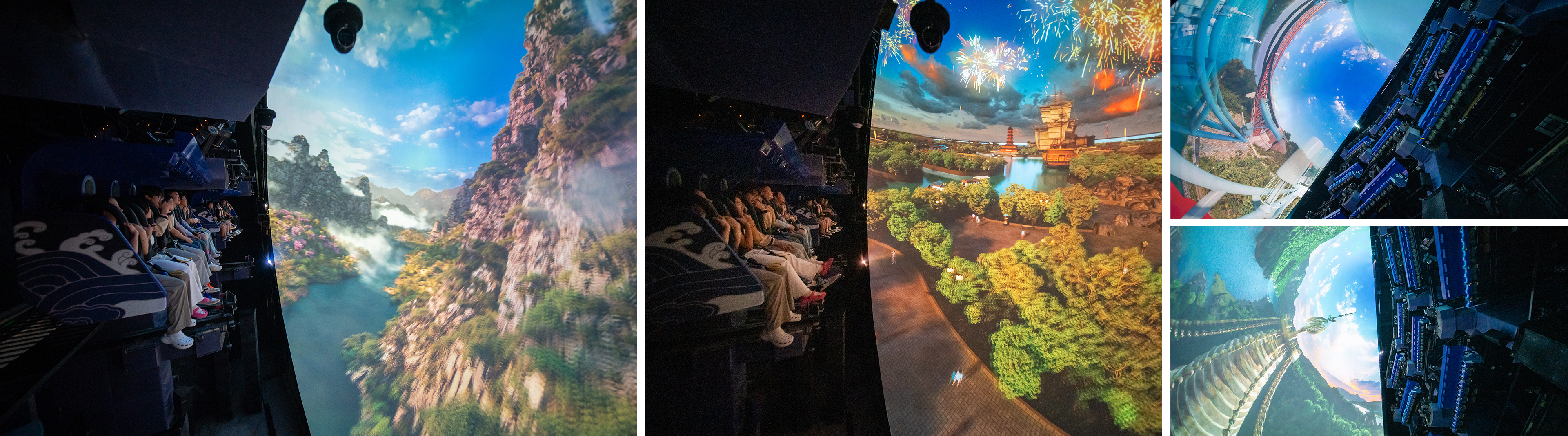 平推式飛行影院采用獨特的六自由度懸掛式動感座椅,逼真模擬墜落、爬升、轉(zhuǎn)彎等動作,與巨型大球幕影片內(nèi)容配合,產(chǎn)生身臨其境的全景式包圍的真實飛行,給游客帶來一場翱翔于空中的強(qiáng)烈沉浸式體驗。