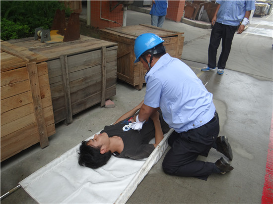 此次演練歷時(shí)半小時(shí),共分為四部分。第一部分是模擬火災(zāi)事故現(xiàn)場(chǎng),救火組成員即刻切斷電源,并用水帶水槍及滅火器進(jìn)行滅火操作。第二部分是人員疏散組成員在確認(rèn)發(fā)生火警后,趕到往H棟車間各層樓梯“安全出口”處,組織疏散現(xiàn)場(chǎng)人員有序撤離至安全區(qū)域,保證樓道暢通,防止踩踏事故。第三部分是人員物資搶救組成員趕到三樓事發(fā)現(xiàn)場(chǎng),配合救火組清理現(xiàn)場(chǎng)危險(xiǎn)物品,開(kāi)辟防火隔離帶,救護(hù)傷員,同時(shí)采用人工呼吸法作簡(jiǎn)單救治。第四部分是照明、通訊組成員配合其他三組負(fù)責(zé)場(chǎng)地照明、模擬報(bào)警、接警車,并在滅火后留現(xiàn)場(chǎng)繼續(xù)監(jiān)查,防止二次火災(zāi)發(fā)生。