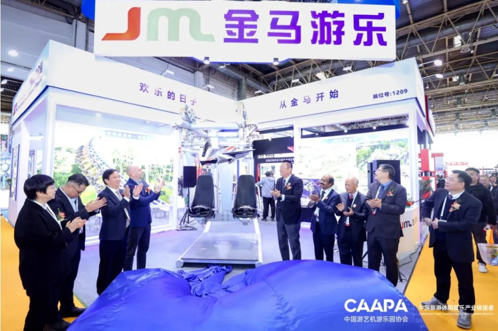 3月19日,2025 CAAPA北京展盛大開(kāi)幕,展會(huì)首日,金馬游樂(lè)舉辦了主題為“革新體驗(yàn),領(lǐng)航未來(lái)”的新品揭幕活動(dòng),為全新懸掛過(guò)山車(chē)“掠空者”揭開(kāi)神秘面紗。活動(dòng)現(xiàn)場(chǎng)人頭攢動(dòng),氣氛熱烈,中國(guó)游藝機(jī)游樂(lè)園協(xié)會(huì)會(huì)長(zhǎng)姚軍、副會(huì)長(zhǎng)戎志剛、TEA(主題娛樂(lè)協(xié)會(huì))董事會(huì)主席Matt Barton、印度游協(xié)會(huì)長(zhǎng)VGP Ravidas等行業(yè)重要領(lǐng)導(dǎo)和嘉賓齊聚一堂,共同為這款過(guò)山車(chē)揭幕。他們的到來(lái)不僅為活動(dòng)增添了光彩,也彰顯了金馬游樂(lè)在行業(yè)內(nèi)的強(qiáng)大影響力。
